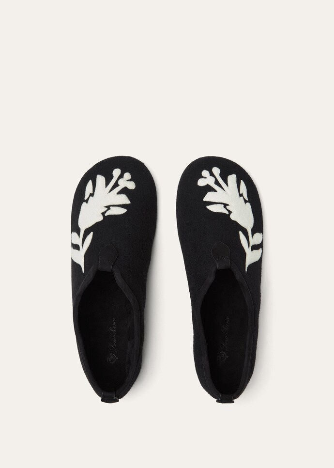 A refined slipper style, the Floaty loafer offers an unstructured fit that remains comfortable throughout the day. It is wrapped in double cashmere and appliquéd with graphic patches that recall the Los Alerces print seen across the House's ready-to-wear offering. The lightly padded insole enhances comfort underfoot, while the piped suede edges on the outer adds thoughtful detail to the minimalist design.